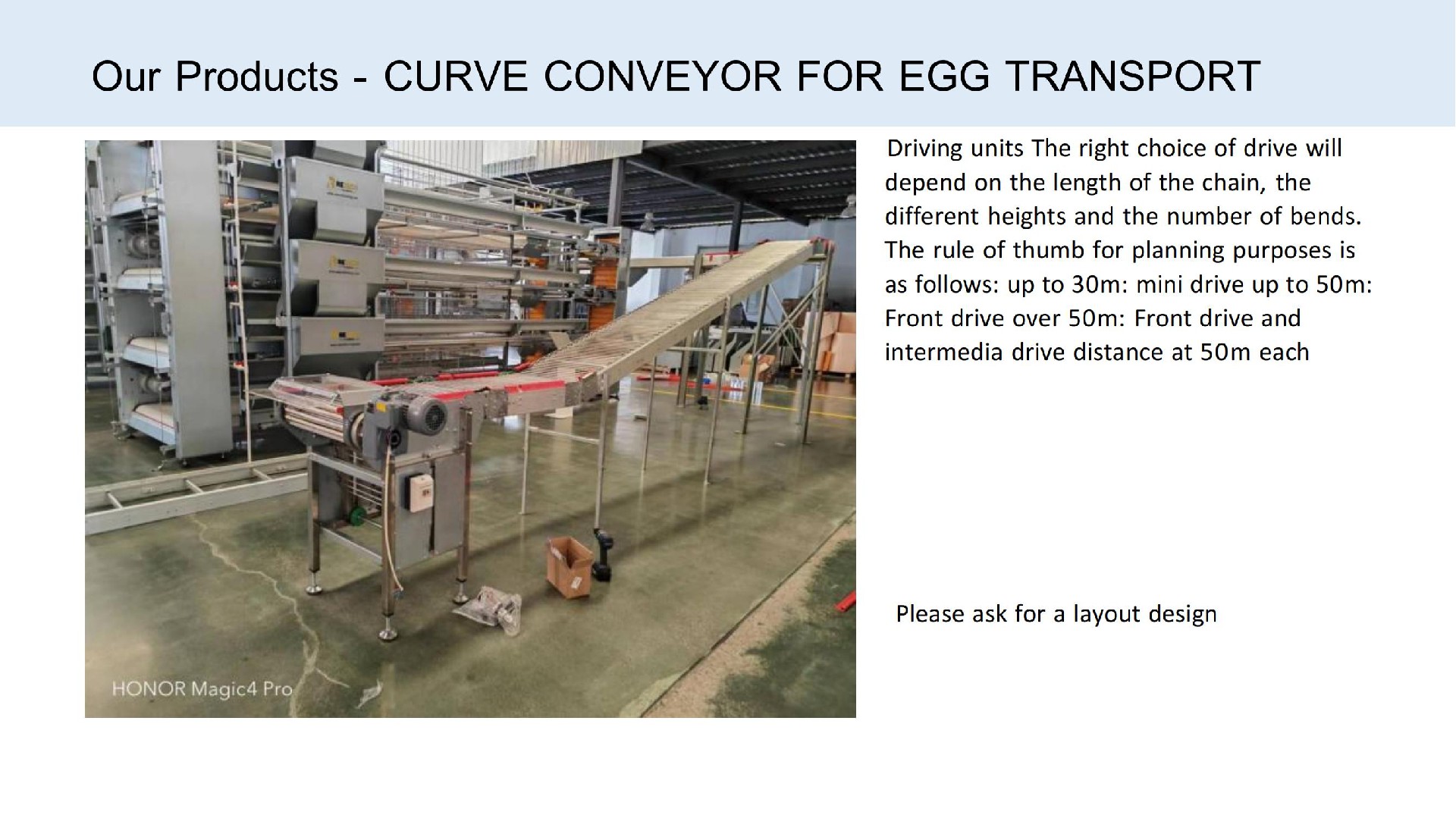 CURVE CONVEYOR FOR EGG TRANSPORT